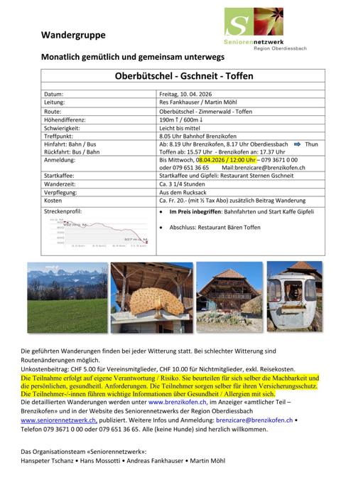 Anmeldung Wanderung an 079 367 10 00 / 079 651 36 65 oder brenzicare@brenzikofen.ch